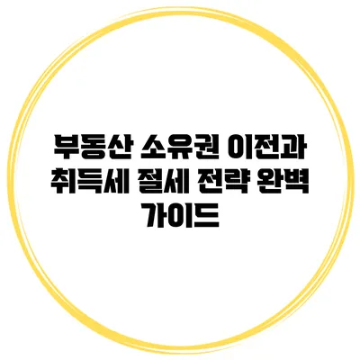 부동산 소유권 이전 시 취득세를 절감하는 방법은 다양해요. 이 부분에서 몇 가지 유용한 전략을 소개할게요.
