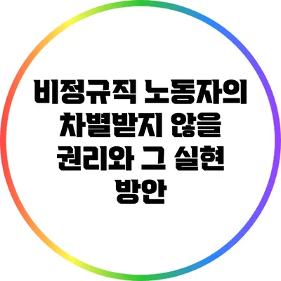 비정규직 노동자의 차별받지 않을 권리를 실현하기 위해서는 기준을 세우고 접근이 필요해요. 다음과 같은 방안들이 고려될 수 있어요:
